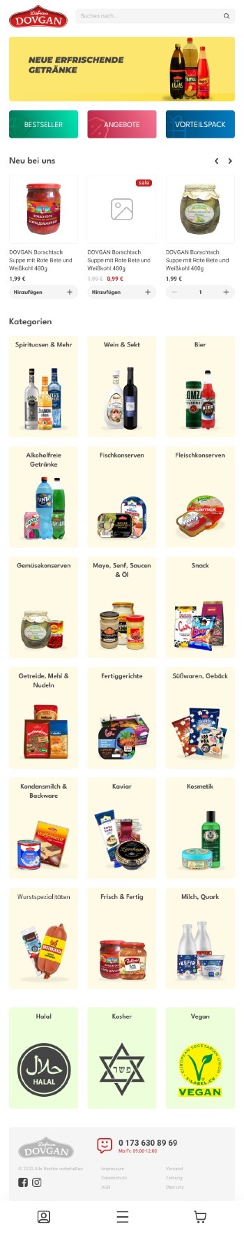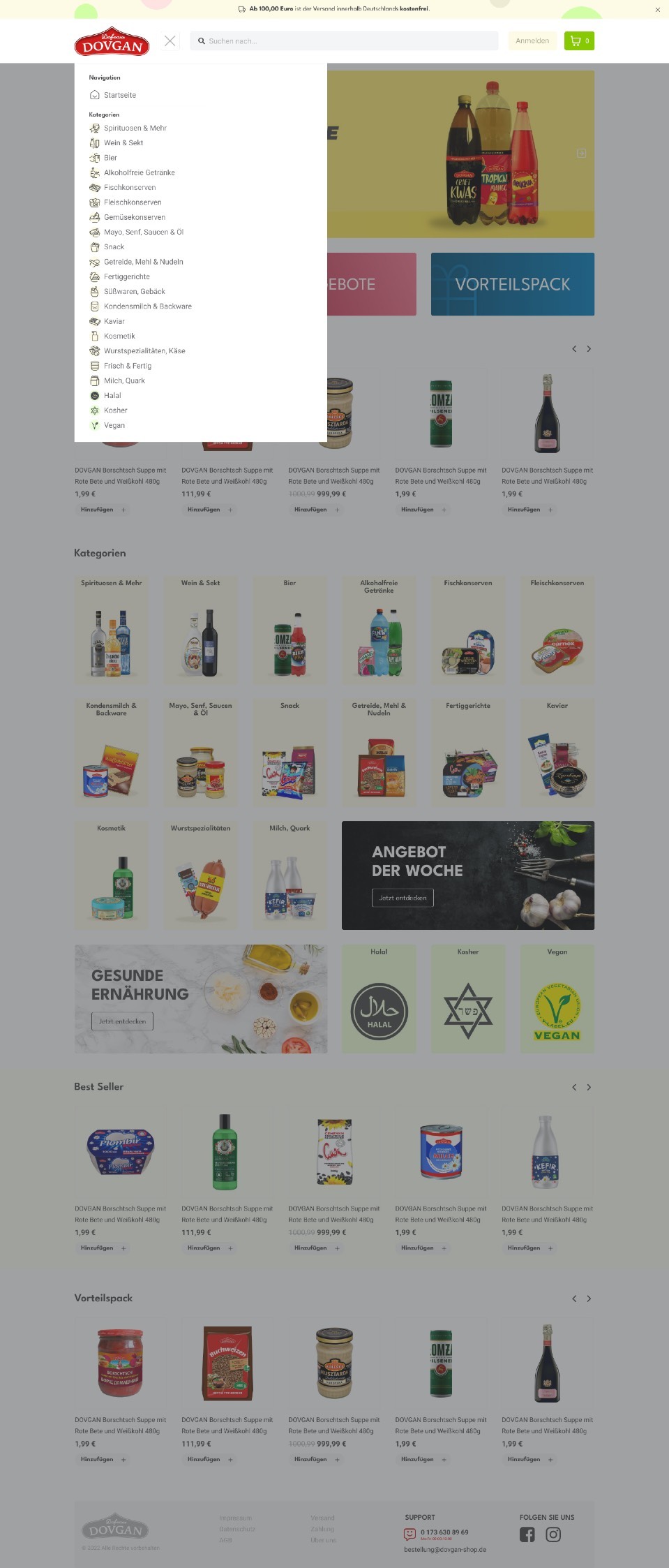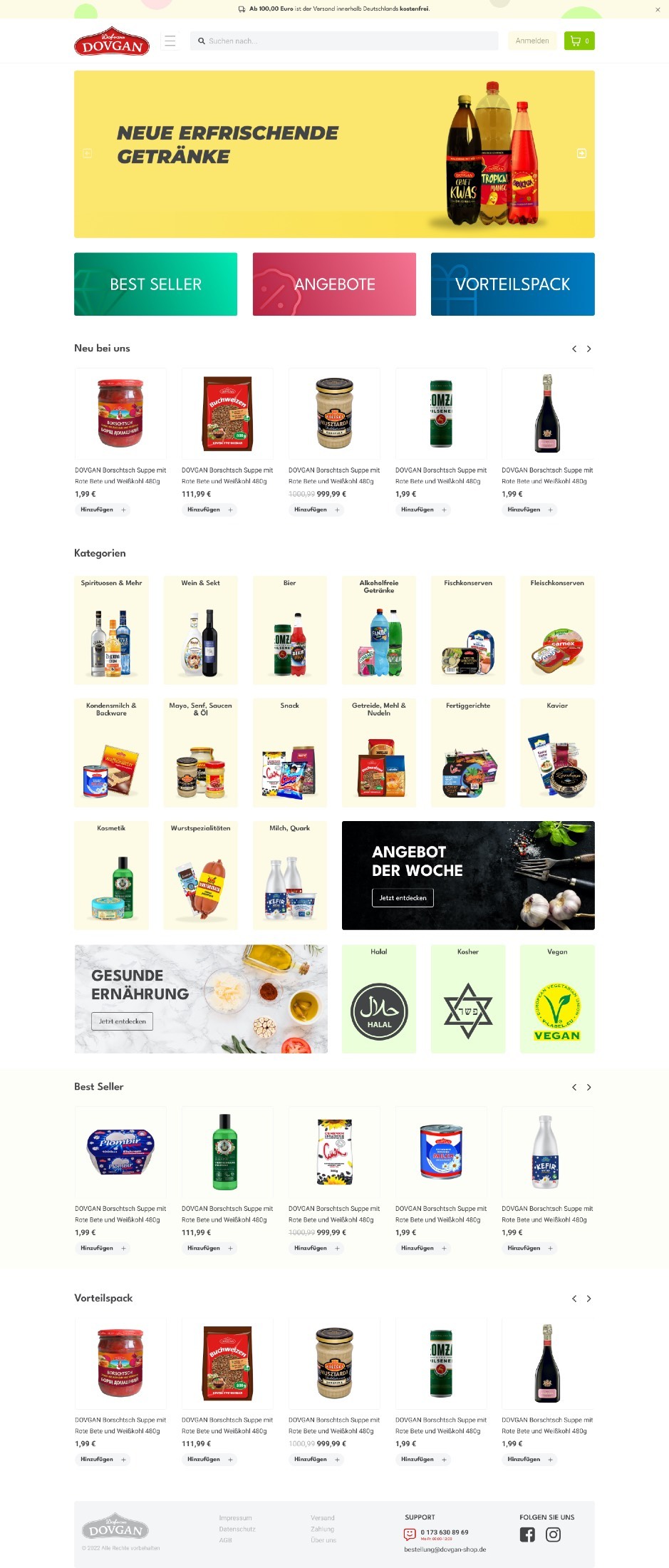 Behind the shop, Dovgan supplies German retail chains with authentic products under strong brands from Eastern Europe, Poland, Romania, the Adriatic (former Yugoslavia), and the Middle East (Turkey, Lebanon, Morocco, Syria, and more). The digital experience needed to reflect that positioning, not a default catalogue layout.